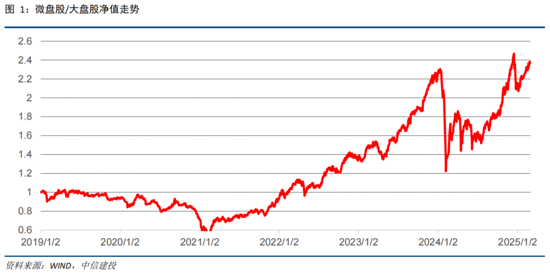 为止2025年2月28日,微盘股/大盘股位于99.53%的历史分位数水平,处于2019年以来99%极值区间。