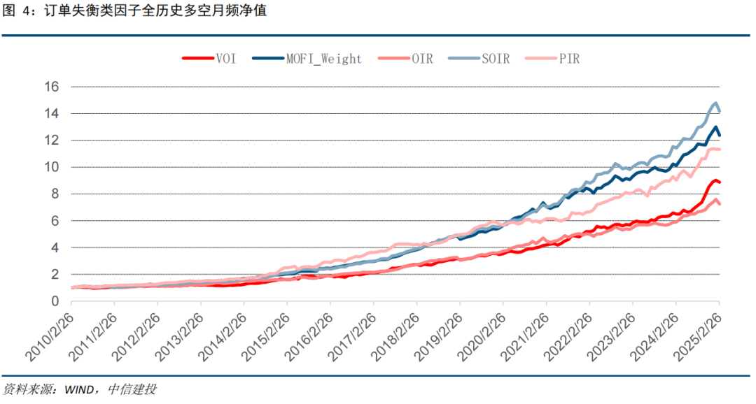 为止2025年2月28日,订单失衡类因子全历史多空月频净值弧线如下: